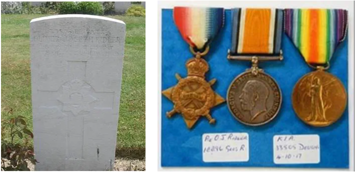 He was posthumously awarded the 1914/15 Star, British War Medal and Victory Medal. A Memorial Plaque and Memorial Scroll were also sent to London on 30th August 1922 to be given to his next of kin.