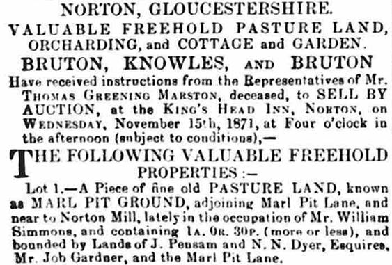 Job’s Will refers to a Mrs Matthews as tenant of his one cottage. In 1830 Walter Matthews had married Elizabeth Herbert at Norton and in 1841 they were living in Marlpit Lane with young son, Charles, and next door to Robert and Elizabeth Herbert. The Matthews were at Worlds End in 1851. Walter Matthews died at Gloucester Asylum in 1869 and in 1871 the widowed Elizabeth was living alone at Norton Green, perhaps in Job’s cottage here, and by 1881 she was back at Marlpit Lane, next door to the widowed Job. In 1891 Elizabeth was boarding in the household of William Biss until she died in July 1892. The Matthews and the Herberts are buried in adjacent plots at St Mary’s, Norton.
