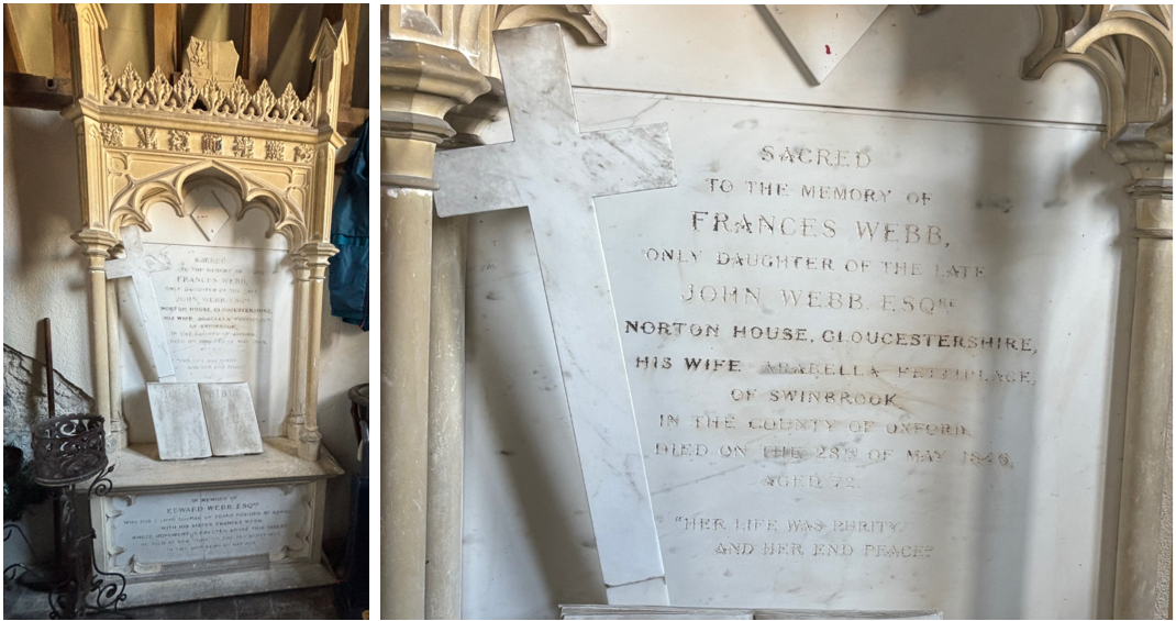 Administration of Col Edward Webb’s Will dated 1811 was granted to his daughter in December 1839 and stated “…I give and bequeath to my daughter Elizabeth Frances Webb my estate known by the name of Norton situated and being in the Parish of Norton … with all the farms, lands and hereditaments belonging thereto…”.