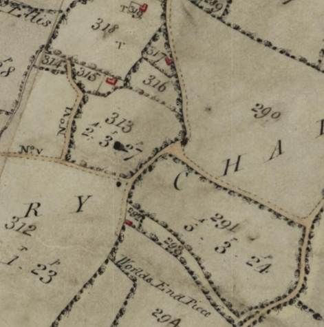 In 1807 there was a property slightly further along the lane from what is now Woodside bungalow at Priors Norton. Plot No 292, near the bottom of the following plan, was then a house and garden, 0-0-17 in area, owned by the Duke of Norfolk, with no details of the occupants at that time. For orientation, the site of Woodside bungalow was Plot No 317, Benges Cottage at Plot No 315, and the lane leaving the plan to the north is heading towards Benges Farm and Ivy House.